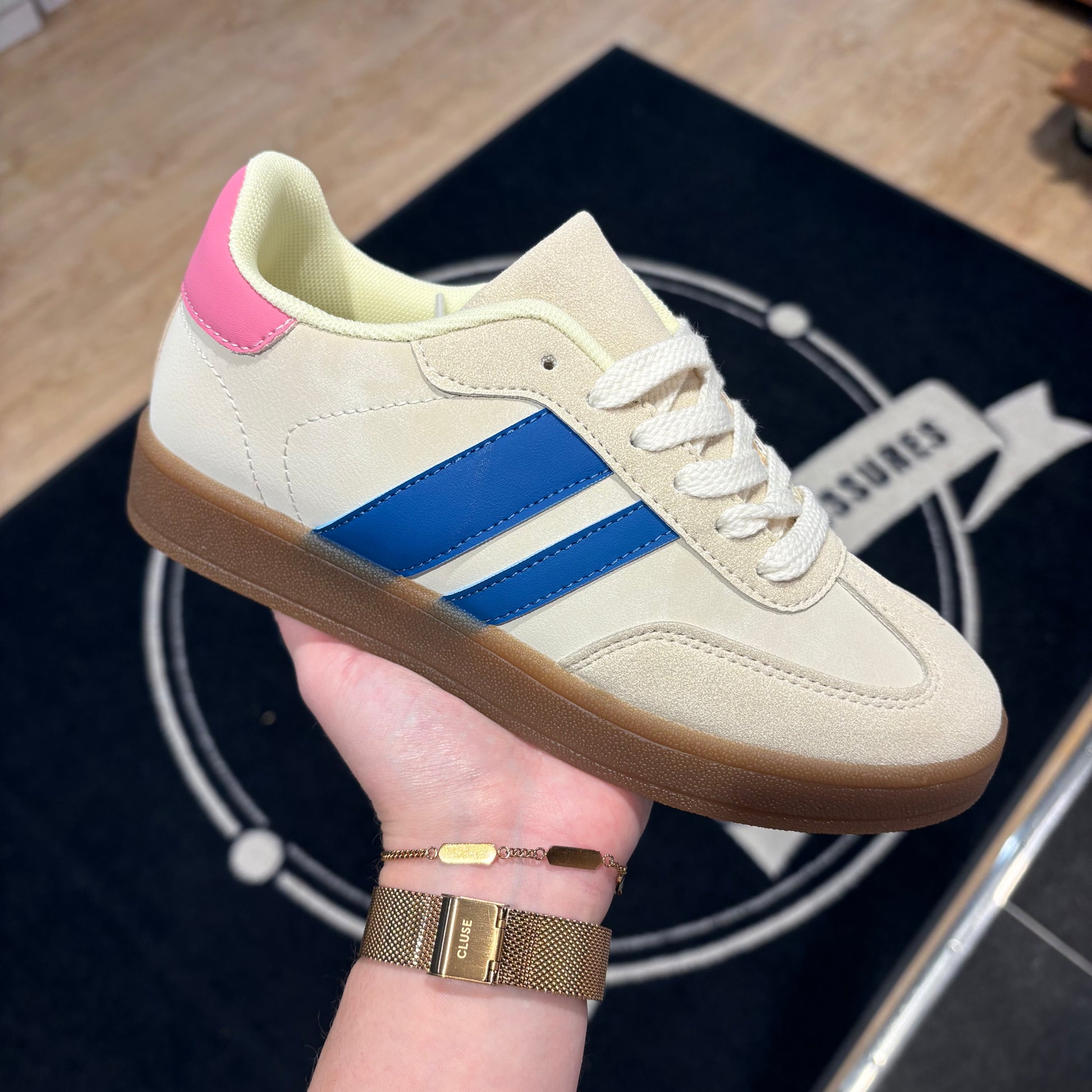 Les baskets Julie allient style et confort pour un usage quotidien. Leur design intemporel avec bandes contrastantes s’adapte facilement à toutes vos tenues.