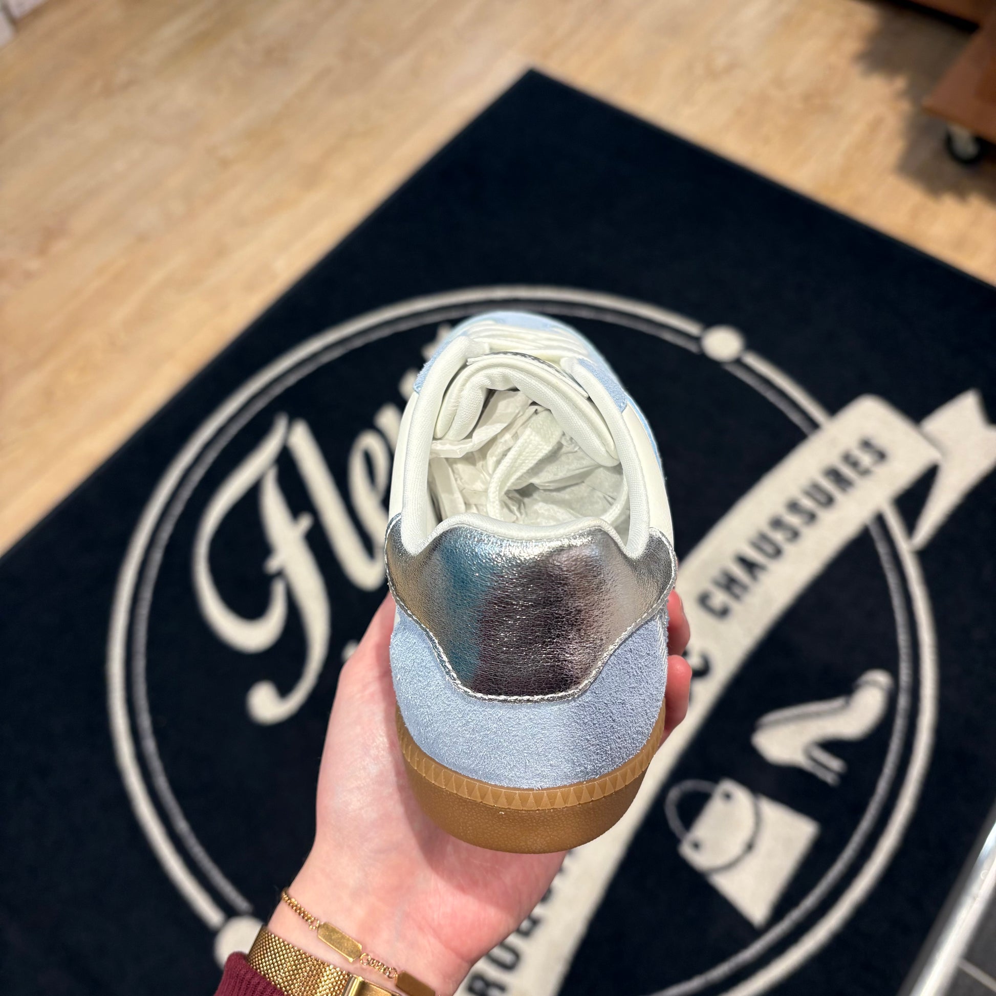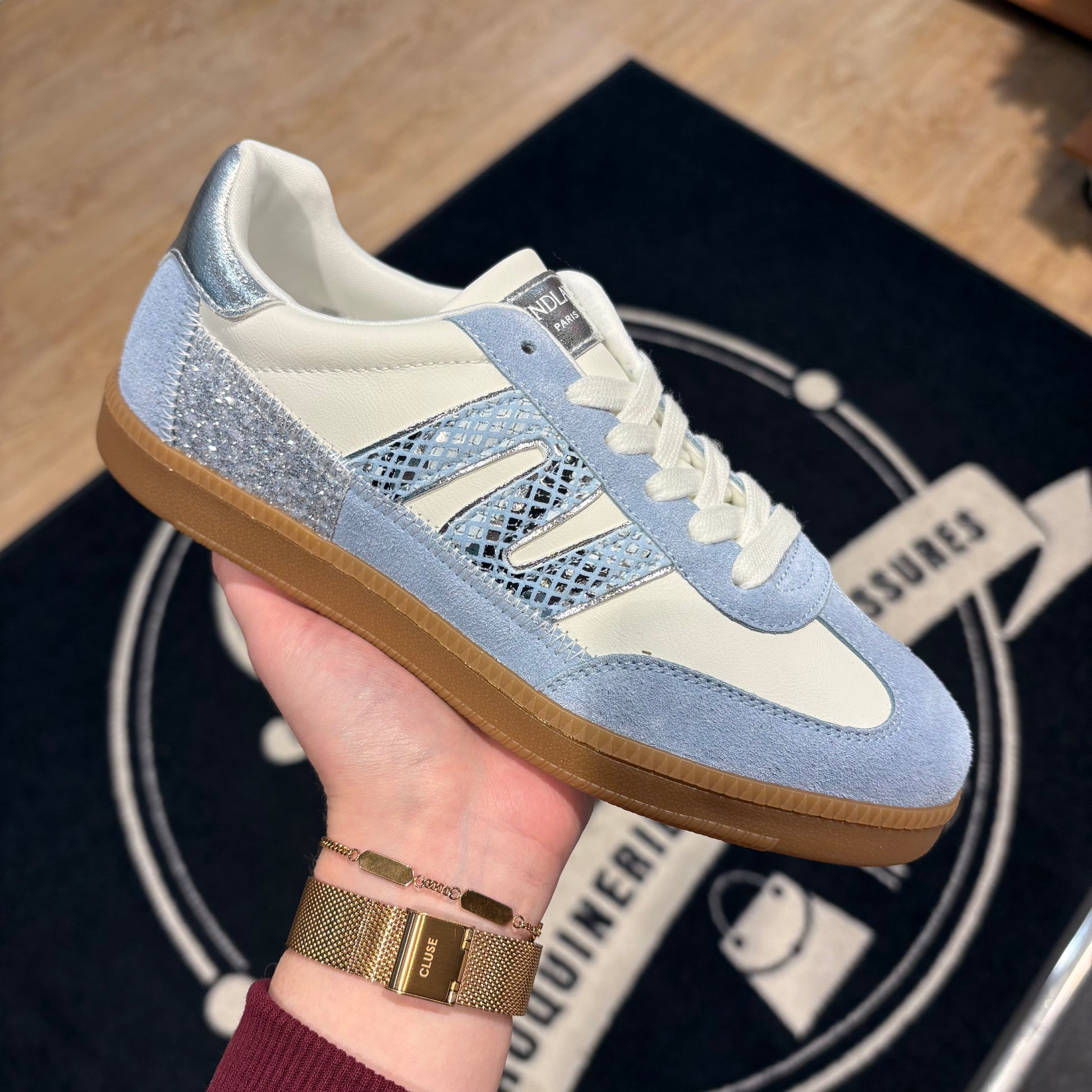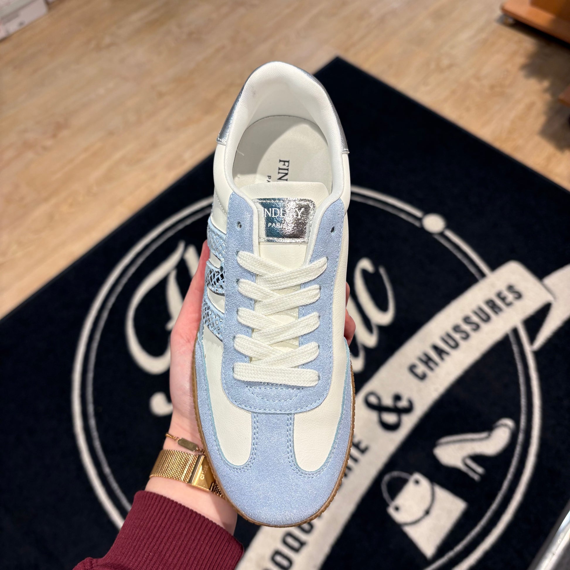 Ces baskets en similicuir bleu apportent une touche fraîche et moderne à tous tes looks. Leur design épuré, mêlant blanc et bleu, est facile à associer au quotidien. Confortables et stylées, elles sont idéales pour une allure casual chic, du matin au soir.