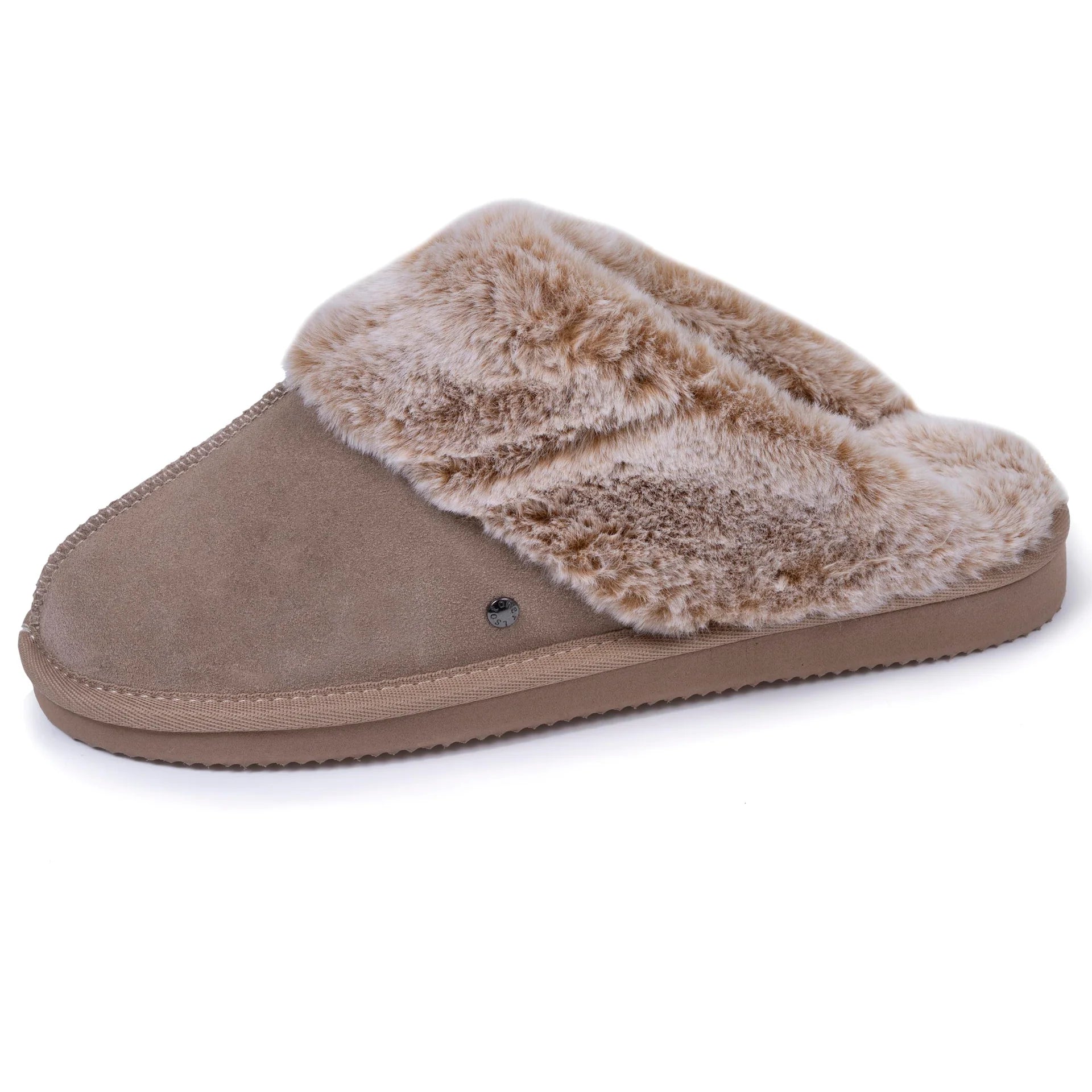 Ces chaussons mules pour femme beige allient confort et matières douces. Le dessus en cuir premium et la semelle intérieure enrichie de mousses complémentaires assurent un soutien durable. L’intérieur est doublé en fourrure synthétique, offrant un toucher ultra doux. Ces chaussons femme enveloppent le pied de chaleur et de confort. Ces pantoufles mules sont ainsi parfaites à porter chez soi.